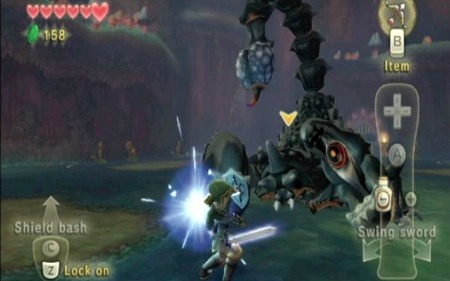Por primera vez desde su lanzamiento (porque algo de esto se había visto, por ejemplo, en No More Heroes, aunque nunca con tanta profundidad) Wii justifica su rocambolesco mando con un juego donde el movimiento del personaje corresponde al del jugador de manera casi perfecta, y esa innovación, que habrá que tener en cuenta para cada acción insignificante, cobra su razón de ser en el combate. Skyward renuncia al botonazo certero en favor del golpe coordinado y exigente: un enemigo menor que en cualquier otra entrega podías pulverizar con poco más que media colleja, de pronto puede ponerte las peras al cuarto si no te andas con cuidado. Es necesario invertir tiempo y esfuerzo en perfeccionar cada golpe, ensayar el postureo cuando las posiciones de ataque exijan de furia discotequera para poderse ejecutar. El resultado es un estilo de lucha afinado e inmersivo (aunque no muy elegante de ver) que refuerza cada aspecto del juego: recorrer el escenario, por primera vez en la serie, es peligroso. Quedarse sin ideas ante un obstáculo es estar a merced de lo que sea que pueda venir.