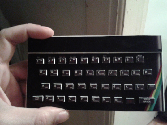 «El Spectrum fue fabricado con láminas de PVC, y forrado con una impresión del frontal. Después fueron pegadas cada una de las teclas, para conseguir el relieve necesario. Cuando todo estuvo modelado, se pintaron todos los elementos a mano».