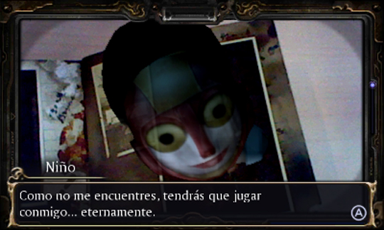 El gameplay de Spirit Camera: La memoria maldita se despliega en base a la utilización de las cámaras de 3DS y un «cuaderno mágico» RA (Realidad Aumentada) de 16 páginas que viene incluido con el programa. Siguiendo las instrucciones dictadas por la historia que Spirit Camera cuenta, tendremos que mirar el cuaderno a través de la cámara y, por consiguiente, de la pantalla de la consola para ver pulular por nuestra propia casa fantasmas y demás espectros malignos y benignos que dependiendo del caso, nos atacarán o ayudarán. Así contado suena atractivo y despierta en ustedes la curiosidad y las ganas de probar nuevas sensaciones jugables, ¿eh? Ya han entrado en la dinámica. El problema llega cuando se comprueba que Spirit Camera es tal cual lo explicado, pero todo el rato, una y otra vez y con un buen montón de pegas añadidas. En primer lugar, la mecánica en sí es aparatosa. La dependencia al librín resulta molesta, más cuando el programa se despista si hay poca o mucha luz en la estancia en la cual intentemos disfrutar del título. El más mínimo reflejo sobre el cuaderno convertirá cualquier fantasmón salido del mismo en un enjuto epiléptico mal visualizado y peor (en el espacio) localizado. Es más: al tener que estar persiguiendo espíritus alrededor del librete y por la habitación, la forma ideal de utilizar Spirit Camera es colocar el cuadernito sobre una mesa situada en el centro del cuarto y con mucho espacio alrededor, evitando que haya alguien más aparte de nosotros en las inmediaciones porque lo normal será que se lleve un consolazo monumental al primer giro rápido que haya que hacer para localizar al ente que, muchas mas veces de las que serían deseables (la mecánica es repetitiva como ella sola), hará acto de presencia a nuestras espaldas. Y qué quieren que les diga: a la cuarta vez que un fantasmita nos ataque por detrás, que haya que estar encuadrando cada dos por tres el librito dichoso, y el hecho de que el programa pide que interactuemos con el «cuaderno mágico» en unas condiciones lumínicas muy concretas, provocará que bien pronto estemos de Spirit Camera hasta el tercer ojo.