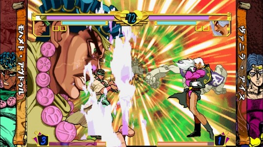 El manga de Hirohiko Araki representa la pasión de la ficción japonesa por la cultura occidental, que no tiene reparos en tomar referencias de primera, segunda y tercera mano y construir así una de las series más marcianas y longevas de la historia del género shonen, que ya va por su octava interpretación en su país de origen. Tras dar un repaso a la mitología decimonónica y mezclar vampiros con Jack el Destripador, la tercera etapa de la serie, Stardust Crusaders, canalizaba la ultraviolencia de El Puño de la Estrella del Norte y le daba una dosis de taurina a esta cruzada generacional contra el Mal: entran en escena los Stands, proyecciones físicas de la energía de los protagonistas en forma de alter egos muy molones –hola, Persona– con nombres aún más molones sacados sin pudor de estrellas musicales de aquí –hola, Vanilla Ice–, cartas del tarot y cualquier cosa que a Araki le apeteciera homenajear en forma de entidad musculosa a la que saltarle los dientes o atravesar a puñetazos. Dado que la propia Capcom había reciclado varios personajes de la serie en forma de iconos de la talla de Guile o M. Bison (el dictador, que del boxeador ya sabemos todos su procedencia), parecía justo y necesario que fuera ella la encargada de adaptar la serie de la única forma en la que se traducían al videojuego los shonen que lo petaban allá por finales de los 90: a puñetazo limpio.
