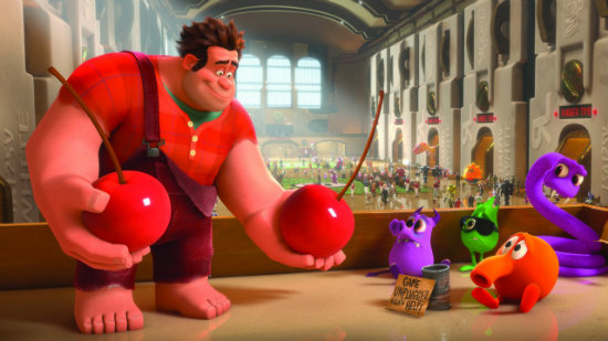 Recomiendo a los amantes de los videojuegos clásicos que contengan su emoción con la avalancha de guiños al medio que lleva a cuestas ¡Rompe Ralph!, un auténtico festival de amor por los juegos retro y la cultura del arcade. Lo recomiendo porque, como si de unos cantos de sirena se tratase, es sencillo perderse en el laberíntico y gozoso catálogo de guiños a héroes y antihéroes del mondo píxel que habitan en cada rincón de la película. Desde las más obvias apariciones de un Kano, un fantasma de Pac-Man o un Bowser a los algo más intrincados papeles de Paperboy, Aerith, la línea del Qix o la casita de Q-Bert, ¡Rompe Ralph! es un festival de homenajes al usuario talludito, que disfrutará como un bebé cuando identifique el Konami Code o sepa qué le pasa a la pantalla del cine después de los créditos finales. Lo digo como absoluto devoto de la estética cuadriculada, artificiosa y brillante del píxel: ¡Rompe Ralph! es casi porno videolúdico para treintañeros.