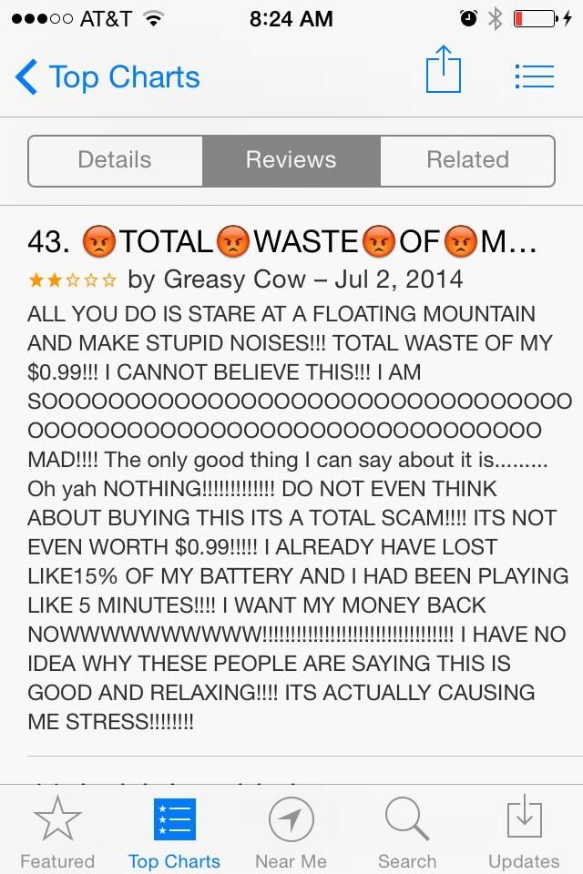23.  En realidad, Mountain es un simulador de montaña POETA. Te dice cosas como “I can think of nothing greater than this bright, bright day” y “I just feel god in this murky darkness”.